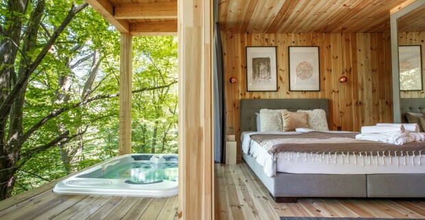 NP Bukové hory v luxusnom drevenom domčeku v Treehouses Noszvaj s raňajkami a privátnou vírivkou + sauna
