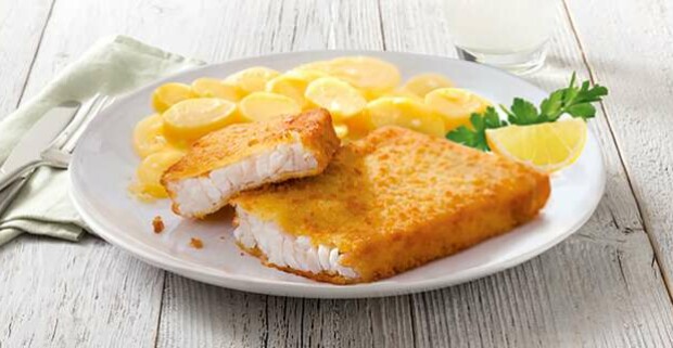 Vyprážaná aljašská treska so zemiakovým šalátom a tatárskou omáčkou v NORDSEE
