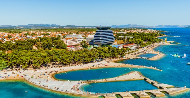 Vodice len 30 m od pláže v apartmáne v Matilde Beach Resorte *** s polpenziou formou bufetu a bazénmi