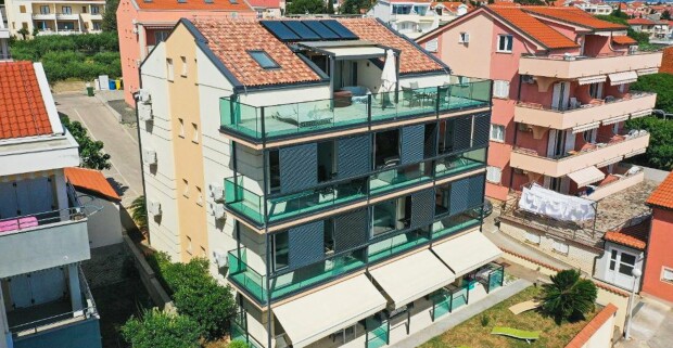 Ostrov Pag: Novalja len 70 m od mora v apartmáne v Kristal Paris Pool House **** s vonkajším bazénom + gril