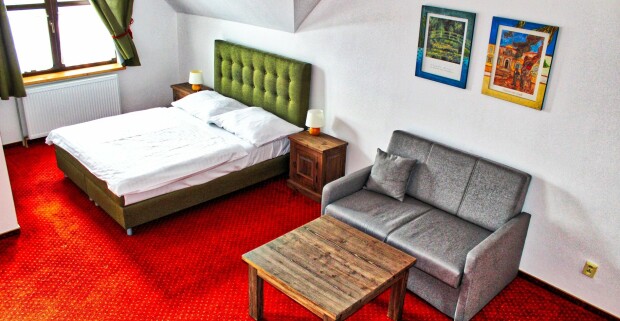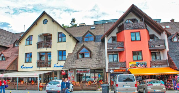Krkonoše: Harrachov s výhľadom na skokanské mostíky v Pensione 7…