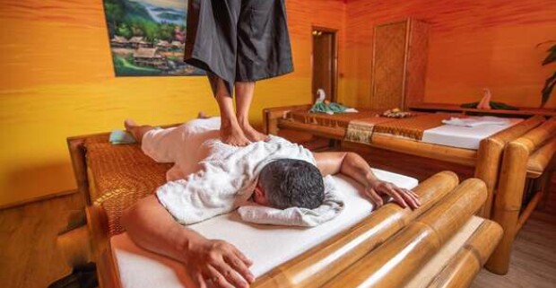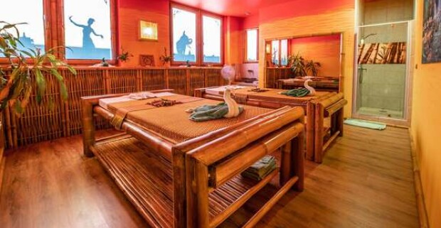 Romantické chvíle na párovej masáži – objatie kokosovým olejom a omamnou vôňou v Sky Ban Pai Thai.