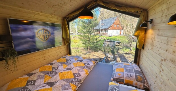 Orlické hory a Jeseníky: Štýlový pobyt v Maringotke U pramene Tiché Orlice s vybavenou kuchynkou a parkovaním